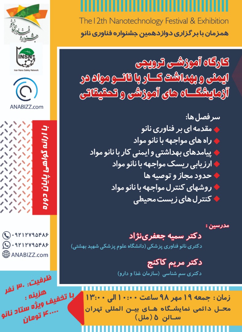 اخبار تحصیلات تکمیلی 06 مهر 1398 کارگاه آموزشی ترویجی ایمنی و بهداشت کار با نانو مواد درآزمایشگاه های آموزشی و تحقیقاتی