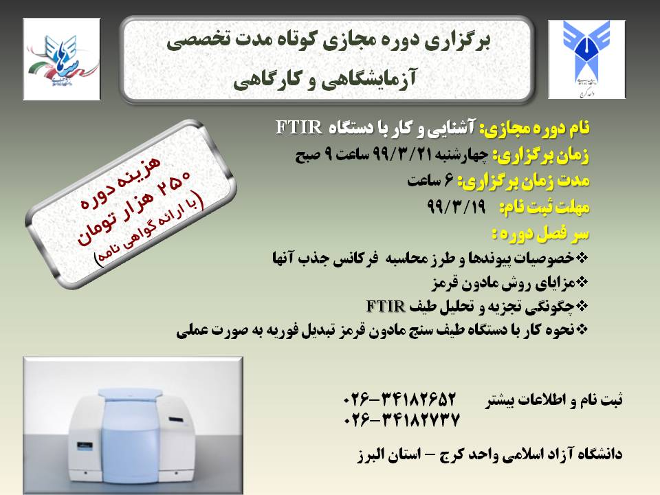 برگزاري دوره آموزشي بصورت آنلاين آشنايي و كار با دستگاه FTIR